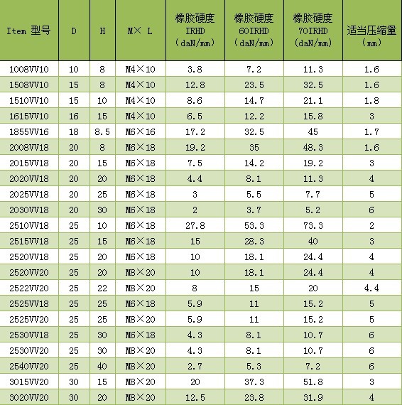 K-VV型橡膠減振器是由配螺栓的上下或單上鋼板,中間圓柱形、圓錐形橡膠體承載,可壓縮和伸長,具有結構簡單、安裝方便,耐油、耐酸堿、抗老化、耐溫等性能,廣泛應用于電子儀器、儀表、設備柜內,也可用于風機、水泵、冷水機組等。由于上下鋼板完全分離,不需另加附件即可減斷聲橋傳遞,是一種非常實用的減振器,尤其適用于電子儀器儀表。
