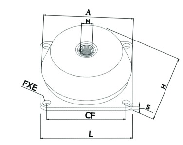 | Item 型號 | 橡膠硬度 IRHD (daN/mm) | A | H | M | FxE | CF | L | S | Max Load 最大荷重 (Kg) | Max Deflec 最大壓縮量(mm) |